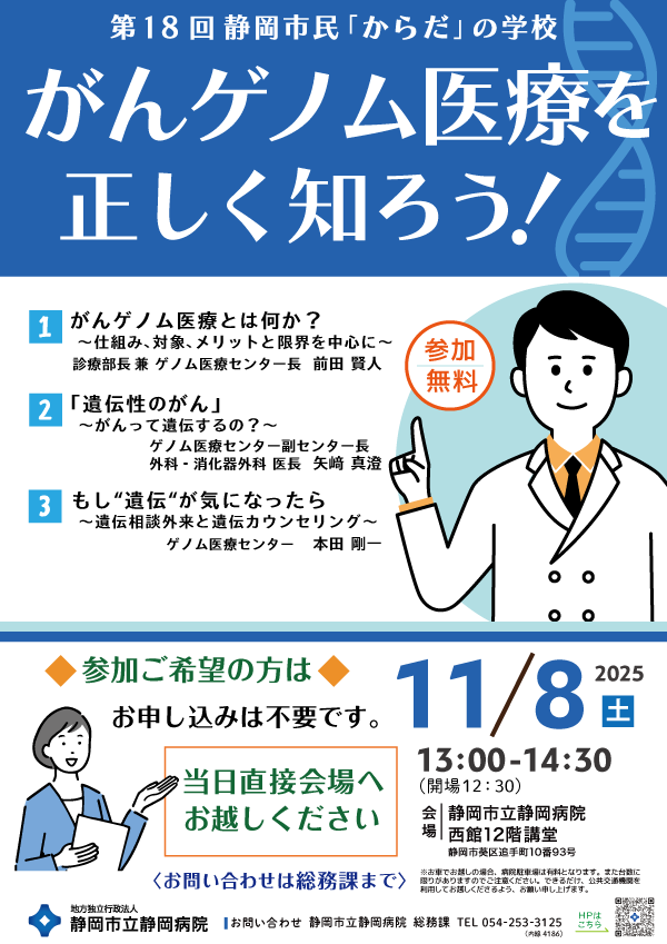 市民公開講座 第18回静岡市民「からだ」の学校「がんゲノム医療を正しく知ろう!」