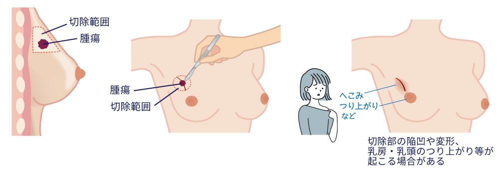 早期乳がんの主な治療は手術による切除術です。腫瘍が小さく、乳頭から距離のある乳がんは乳房部分切除術(Bp)が適応となります。